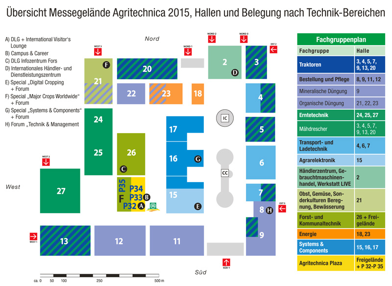 - Bodenbearbeitung, Bestellung und Pflege in den Hallen 9 bis 12 (neu: Anbieter mit Technik aus den Bereichen Pflanzenschutz und Mineraldüngung in Halle 9).