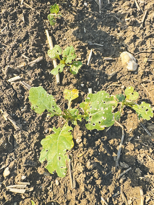 Entscheidend für eine ausreichende Herbstentwicklung ist nicht die Größe einzelner Blätter, sondern die Zahl der im Herbst gebildeten Laubblätter, denn nur diese legen die Anlagepunkte für spätere Seitentriebe fest. Jeder ausgefallene Blattansatz kostet im Frühjahr potenzielle Verzweigung und damit Kornzahl. Vor diesem Hintergrund wird klar, warum die massive und langanhaltende Aktivität des Rapserdflohs der vergangenen Wochen das Wachstum so beeinträchtigt hat. Gelbschalen mit Hunderten Käfern, wie man sie in den letzten Jahren kaum kannte, trafen auf junge, assimilationsschwache Pflanzen – und die üblichen Bekämpfungsmaßnahmen mit Pyrethroiden blieben weithin ohne ausreichenden Effekt. Andreas Hommertgen, DLR Rheinhessen-Nahe-Hunsrück, Bad Kreuznach – LW 45/2025
