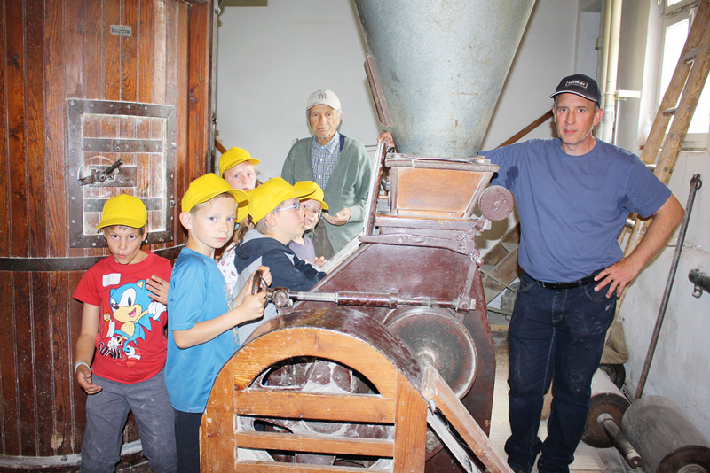 40 Kinder nahmen dieses Jahr beim Ferienangebot des Bauernverbandes Buseck teil. Mit Traktorgespannen wurde zunächst eine kleine Lehrfahrt durch die Felder unternommen. Auf der Spitzmühle (Foto) erklärte ihnen später Müllermeister Karl-Heinz Fiedler den Weg vom Korn zum Mehl. Interessantes unter anderem zur Imkerei erläuterten ihnen Paulfried Spies sowie Melanie Abel zur Haltung von Pferden.