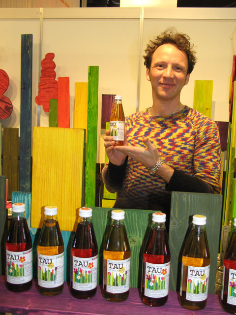 Eine gelungene Innovation stellte Kai Grudde aus Frankfurt vor. Original Marlenes Tau von den Wiesen, 2 Sorten Kräuterteeaufguss.