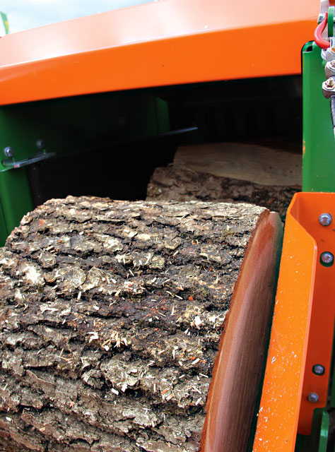 Ein ähnliches System ist der Hannibal von der Firma Growi aus Oberthingau im Allgäu. Auch hier werden die gespaltenen Meterstücke, Stangen, Bretter oder Rundlinge bis zu 3 m Länge von einer Kreissäge gekürzt und anschließend per Förderband abtransportiert. So ist eine Leistung von 7 bis 12 Raummeter/h möglich. „Neu ist nun die Vorschubwalze, die das Holz nach vorne schiebt und für einen reibungsfreien Vorgang sorgt“, sagt Firmeninhaber, Christof Freudling.