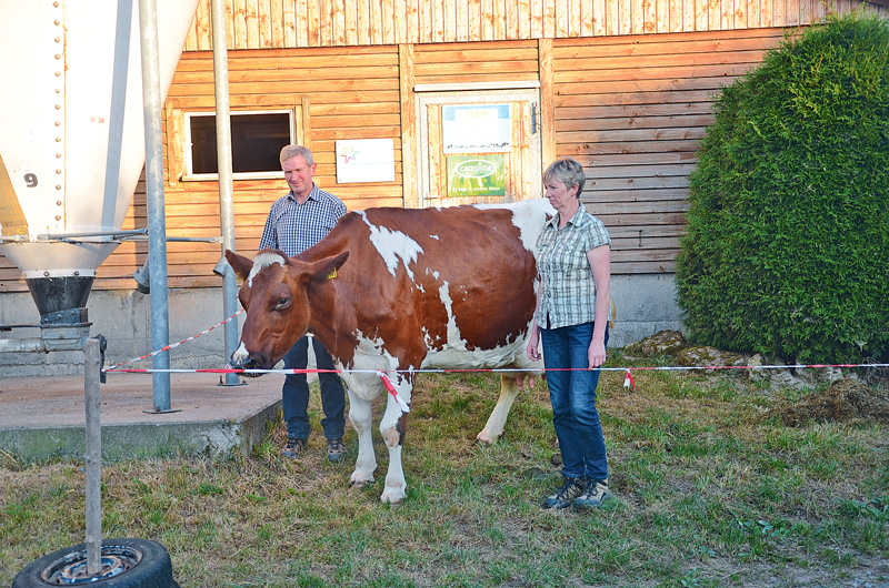 In Heringhausen am Diemelsee liegt der Milchviehbetrieb von Karl und Regina Pohlmann, der viele relativ hängige Weideflächen bewirtschaftet. Möglicherweise hat der tägliche Weidegang bei der Kontur-Tochter Gertrud VG88 mit dazu beigetragen, dass diese elfjährige Kuh am Ende der achten Laktation mit einem Durchschnitt von 10 633 - 3,88 - 3,17 jetzt die 100 000-Liter-Grenze überschritten hat. „Nun haben wir es auch mal geschafft, eine Kuh mit über 100 000 Liter Milch vorstellen zu können“, fasste Karl Pohlmann bei der Präsentation seiner Dauerleistungskuh seine Eindrücke zusammen. Dies gilt hauptsächlich vor dem Hintergrund, da die Familie Pohlmann in absehbarer Zeit aus der Milchviehhaltung ausscheiden wird. Die Herde wechselt dann in das benachbarte Rhenegge zu Christian und Bärbel Pohlmann und dort wird die Herde inklusive Gertrud weiterhin täglich ihre Milch liefern. Auffallend sind der sehr korrekte Körper dieser mittelgroßen Kuh und das noch am Sprunggelenk sitzende Euter, das auch nach dieser hohen Lebensleistung noch allen Anfor­de­rungen an jegliche moderne Melktechnik entspricht. Sicherlich ist dies auch maßgeblich auf die grundsolide züchterische Arbeit zurückzuführen, die Karl und Regina Pohlmann während ihrer gesamten Betriebsführung umgesetzt haben. Leider gibt es von der Kuh kaum weibliche Nachzucht, so dass die Wahrscheinlichkeit, aus der Kuhfamilie eine weitere Dauerleistungskuh vorstellen zu können, vergleichsweise gering ist. Text/Foto: Jost Grünhaupt, LLH Kassel