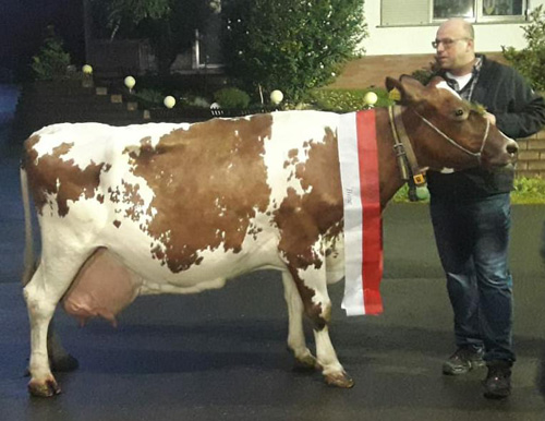 Mit absoluter Konstanz und der dazu notwendigen Vitalität hat es die Ingo-Tochter Gelina 10/VG85 unter die Top drei nach Gesamtlebensleistung in Hessen geschafft. Die Grenze mit 10 000 kg Fett und Eiweiß hat sie schon lange überwunden und jetzt hat sie auch die 15 000 kg Marke geknackt. „Das ist schon etwas Besonderes“, fassen Reinhold Liese und seine Familie in Rhöda, unter der A44 gelegen, ihre Eindrücke zusammen. „Die erste Kuh mit über 100 000 Liter Milch hatten wir vor 20 Jahren und jetzt hat Gelina sogar die 150 000 kg überschritten und tragend ist sie auch wieder, denn aktuell befindet sie sich in der Trockenstehergruppe“, so Reinhold Liese. Mit ihrer Durchschnittsleistung von 10 646 - 4,30 - 3,32 hat sie konstant auf sehr hohem Niveau produziert und ist aktuell die letzte Kuh, die noch auf dem Hof Liese im Melkstand gemolken wurde. Inzwischen ist bereits der zweite Melkroboter im Einsatz und trotz der kurzen Striche hat es nie Probleme beim Melkablauf gegeben und auch beim Merkmal Eutergesundheit ist die alte Dame nach wie vor im Spitzenbereich in der Herde. Alles wichtige Merkmale, um eine solch herausragende Lebensleistung zu erreichen. In der Herde ist einiges an Nachzucht von Gelina vorhanden und damit sind die Voraussetzungen gegeben, dass vielleicht mal wieder eine Kuh mit einer besonders hohen Lebensleistung auf dem Hof der Familie Liese vorgestellt werden kann.
