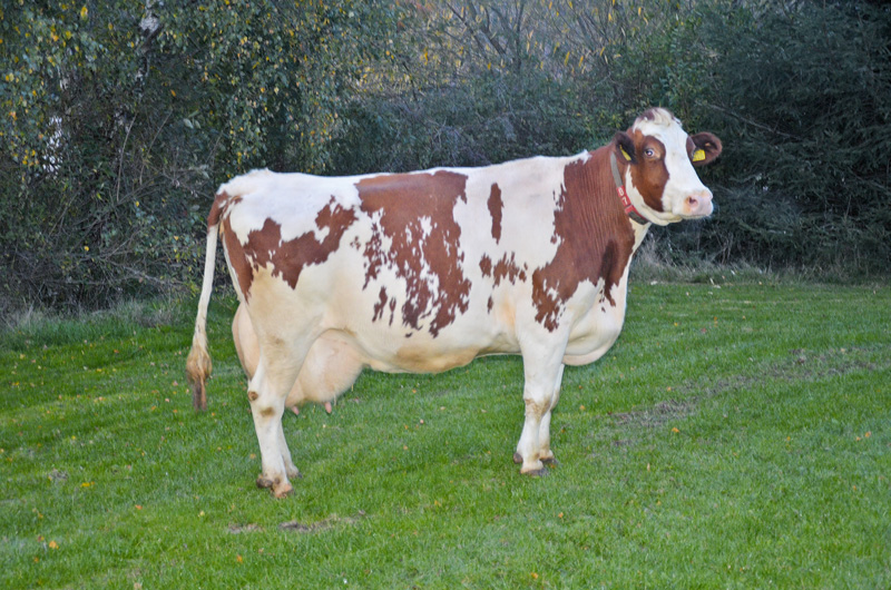 In einer absolut beeindruckenden Verfassung wurde auf dem Hof der Familie Golomb in Schwarzenborn die Malvoy-Tochter Prima VG 86 nach Überschreiten der 100 000 Liter-Grenze vorgestellt. Das Leistungspotential ist hier offensichtlich von beiden Elternteilen weitergegeben worden, denn ihre Mutter lag hinsichtlich Milchmenge auf einem sehr guten Niveau und Malvoy gehört auch heute noch zu den absoluten Spitzenbullen für Milchleistungsmerkmale. Das kann man auch daran erkennen, dass die Durchschnittsleistung der Kuh bei acht Abkalbungen in der Größenordnung von 12.616 - 3,31 - 3,26 liegt und zwei Laktationsleistungen lagen über 15 000 kg Milch. „Das hat die Kuh problemlos gemacht“, fasst Heidi Golomb die Leistungsbereitschaft von Prima zusammen, die in der Herde, die seit 15 Jahren automatisch gemolken wird, keinerlei Sonderbehandlungen erfährt. Über die in direkter Linie vorhandene weibliche Nachzucht, aber auch die Nachkommen ihres Sohnes Pablo, der im Betrieb genutzt wurde, wird die überlegene Genetik hinsichtlich Leistungsmerkmalen und Fitness dieser Spitzenkuh weiterverbreitet.