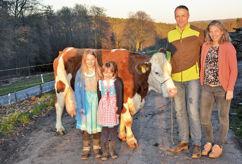 Seit einigen Jahren gibt es immer wieder hessische Milchviehbetriebe, die mehrere Kühe mit einer Lebensleistung von über 100 000 Liter Milch in ihrem Bestand haben. Der bisherige Spitzenwert lag bei sieben Kühen an einem Tag. Dieser Wert wurde jetzt von Gerd Holschuh und Susanne Zwick im Erbacher Ortsteil Erbuch übertroffen: Nachdem bereits im vergangenen Jahr sechs Kühe auf der Weide präsentiert werden konnten, hat es das engagierte Betriebsleiterpaar geschafft, drei weitere Kühe mit über 100 000 Liter Milch zu präsentieren, und die sechs Kühe vom vergangenen Sommer sind ebenfalls noch in der Herde.