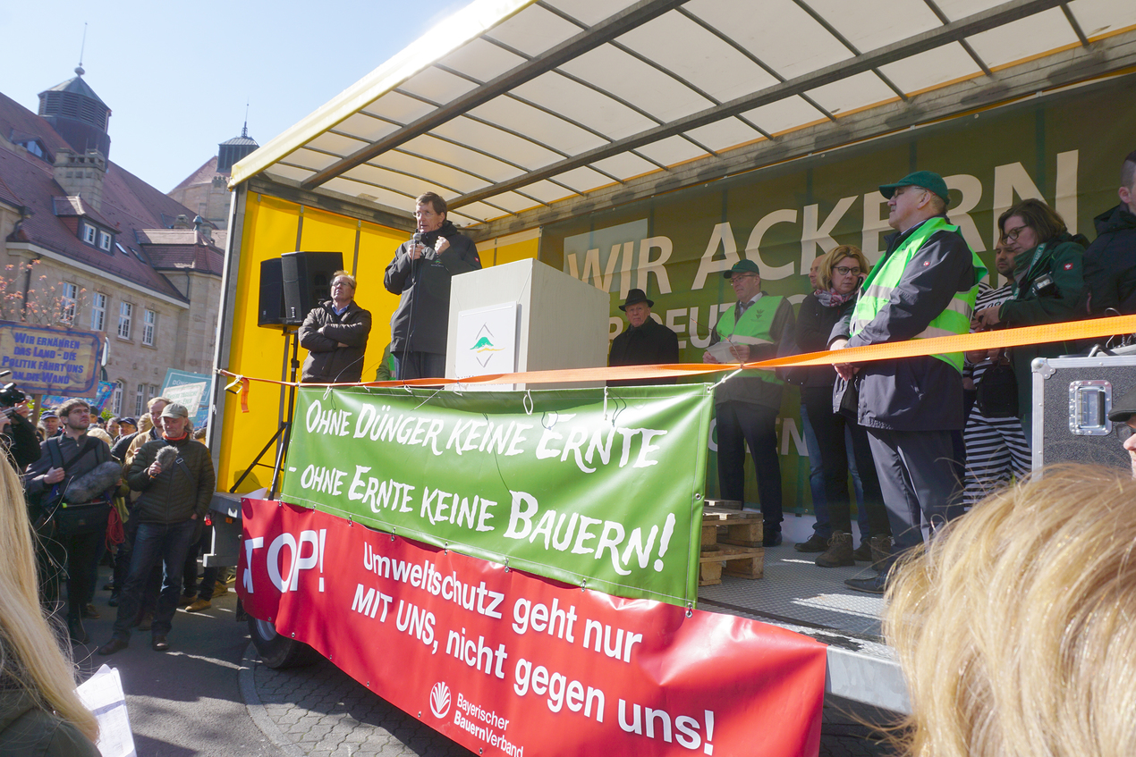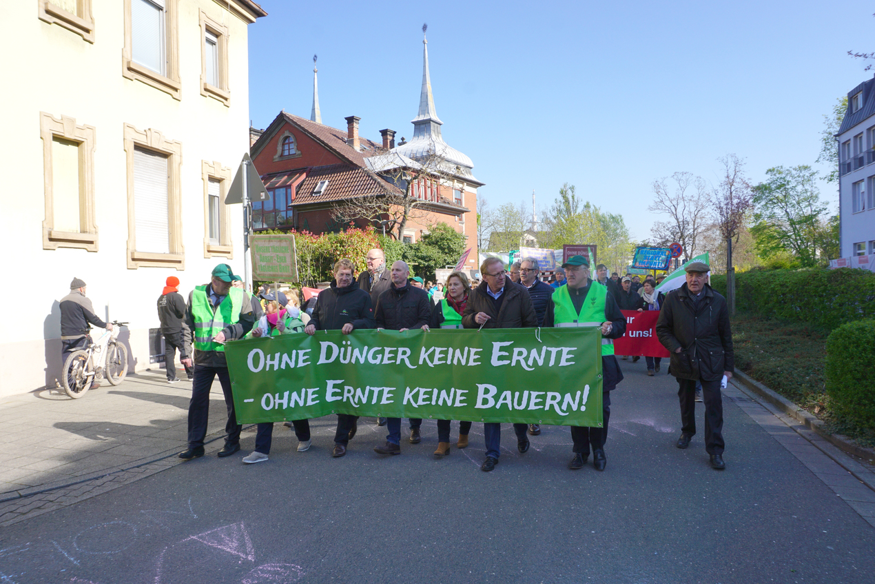 Rund 1 500 Bauern und Winzer mit 80 Traktoren haben sich trotz bestem Wetter und somit optimaler Arbeitsbedingungen von ihren Feldern auf den Weg nach Landau gemacht, um den Agrarministern der Bundesländer zu verdeutlichen, dass sie nicht länger ein Spielball der Politik sein dürfen. Unter dem Motto „Ohne Dünger keine Ernte – ohne Ernte keine Bauern“ betonten sie, dass der Handlungsspielraum auf den Betrieben so sehr eingeengt werde, dass es die Existenz bedrohe.