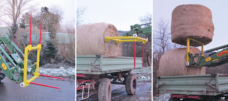 Die Tüftlerarbeit von Carsten Schimmelpfennig besticht durch ihre Einfachheit und Effektivität: Er hat eine Ballengabel für den Frontlader mit einem doppelten Satz an Zinken gebaut und kann damit kurz hintereinander zwei Heuballen aufnehmen und gleichzeitig transportieren. Für diese Arbeit erhält der Nebenerwerbslandwirt aus Heringen an der Werra in Nordhessen den 2. Preis, der mit 1 000 Euro dotiert ist.