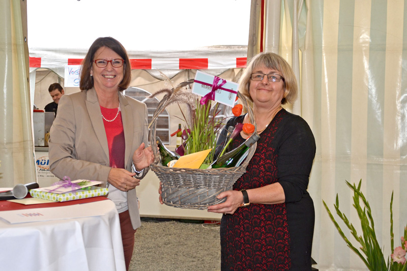 Am vergangenen Freitag ist Ministerialdirigentin Dr. Anna Runzheimer (r.), Abteilungsleiterin Landwirtschaft im Hessischen Ministerium für Umwelt, Klimaschutz, Landwirtschaft und Verbraucherschutz (HMUKLV), in den Ruhestand verabschiedet worden. Staatsministerin Priska Hinz (l.) würdigte ihre Verdienste um die Landwirtschaft in Hessen. Unter den Ehrengästen dankte der Vizepräsident des Hessischen Bauernverbandes, Armin Müller, Dr. Runzheimer für ihre an den Bedürfnissen der landwirtschaftlichen Praxis orientieren EntÂscheiÂdungen.