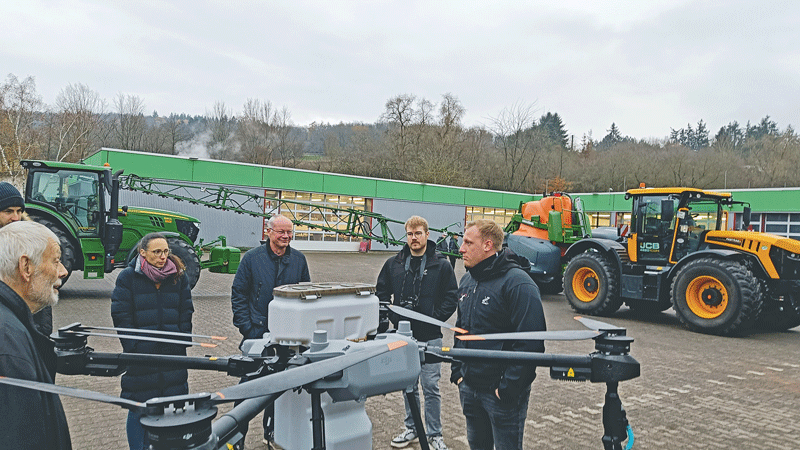 Wichtig ist aber auch die Innenreinigung der Pflanzenschutzgeräte, die vor Ende jeder Fahrt durchgeführt werden sollte, um ein Austropfen der Spritzbrühe auf befestigten Wegen und somit ein Abfließen in nahe gelegene Gewässer zu vermeiden. Besonders hilfreich ist dafür die kontinuierliche Innenreinigung. Wie sie funktioniert, zeigte Jonas Borkowski von der DEULA anhand einer „Gläsernen Spritze“, einem durchsichtigen Spritztank, der mittels Closed-Transfer-System – einem System zur Vermeidung von Verschütten und zum Schutz der Anwendenden – mit gefärbtem Wasser befüllt wurde.Florian Jenner, ein Vertreter der Bayer CropScience Deutschland GmbH, ging in seinem Vortrag auf weitere Eintragswege, wie den Run-Off, also ein Ablaufen der Pflanzenschutzmittel von der Fläche in agrarnahe Gewässer, ein. Außerdem erläuterte er, wie das Online-Tool GeoBox-Viewer vom DLR RLP den Gewässerschutz in der Landwirtschaft unterstützen kann.