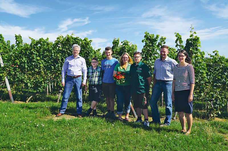 Familie Becker ist sehr engagiert in der Öffentlichkeitsarbeit und betreibt seit Jahren einen Kinderwingert. Hier erleben die Schulkinder vom Rebschnitt bis zur Traubenlese die Arbeiten, die im Laufe des Jahres im Weinberg anfallen. Alexandra Becker hat dafür eine pädagogische Schulung absolviert. Sie und ihr Mann Marco bewirtschaften insgesamt 19 Hektar Rebfläche und rund 30 Hektar Ackerbau. Die Söhne Julius, Johann und Jakob sind schon engagiert dabei.