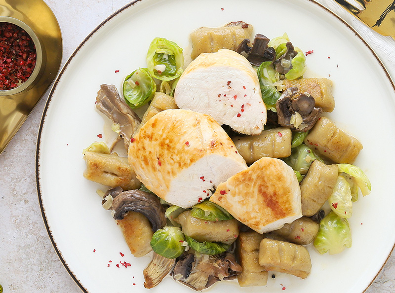 Hähnchenfilet mit Maronengnocchi und Rosenkohl
