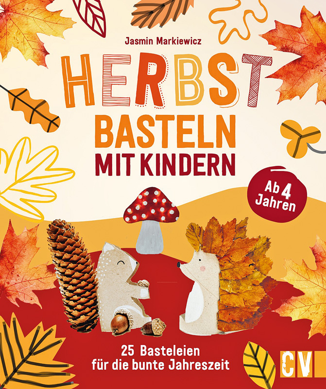 Viel Inspiration und ideale Beschäftigung für Kinder ab vier Jahren bieten die 25 herbstlichen Bastelprojekte in dem Buch „Herbstbasteln mit Kindern“ von DIY-Bloggerin Jasmin Markiewicz. Aus Blättern, Klopapierrollen, Eierkartons, Altpapier und Wollresten entstehen dekorative Fuchsmasken, kleine Waldwesen und fliegende Halloweengeister. Auch an den Nasch-Spaß mit zum Beispiel Fliegenpilz-Muffins und Igel-Keksen ist gedacht.