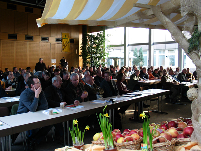 Von der Kirschfruchtfliegenbekämpfung im vergangenen Jahr berichtete Günter Hensel, DLR Rheinpfalz. Der beim Laien als Kirschmade bekannte Schädling ist, durch die eingeschränkte Pflanzenschutzmittelverfügbarkeit, ein relativ problematischer Schädling. Bei der Vermarktung wird kein Befall toleriert. Mospilan wird voraussichtlich auch 2009 wieder nur über „Gefahr im Verzug“ (§11,2 PflSchG) zur Verfügung stehen. Begleitet wurde die Veranstaltung von einer ganztägigen Ausstellung im Foyer. bs