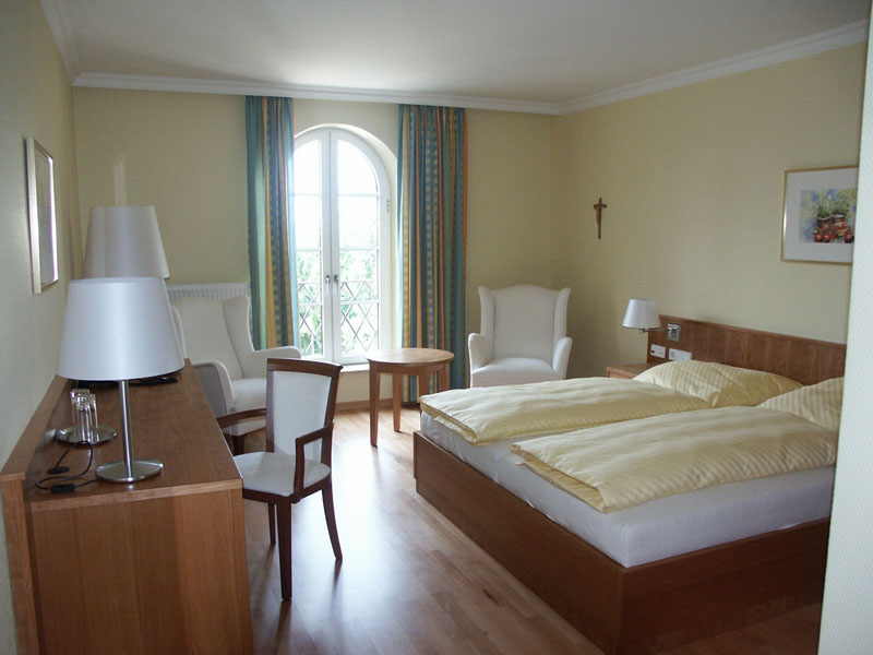 Die barrierefreien Gästezimmer sind geschmackvoll eingerichtet. Fernseher oder Internetzugang gibt es auf Anfrage.