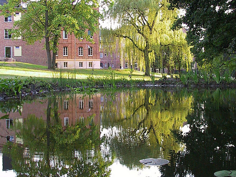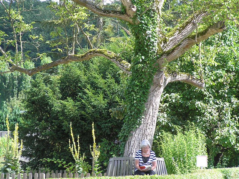 Der Klosterpark mit Feuchtbiotop lädt zum Alleinsein oder zur Begegnung ein.