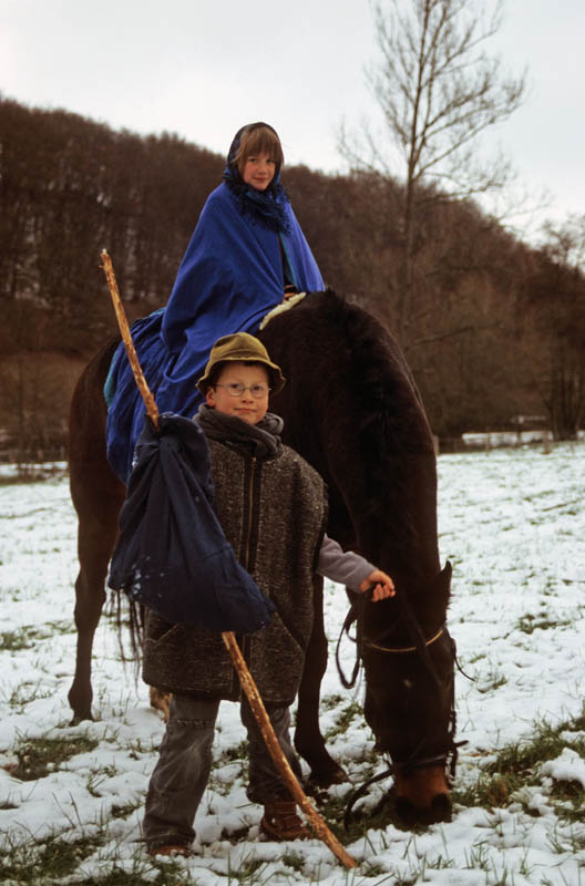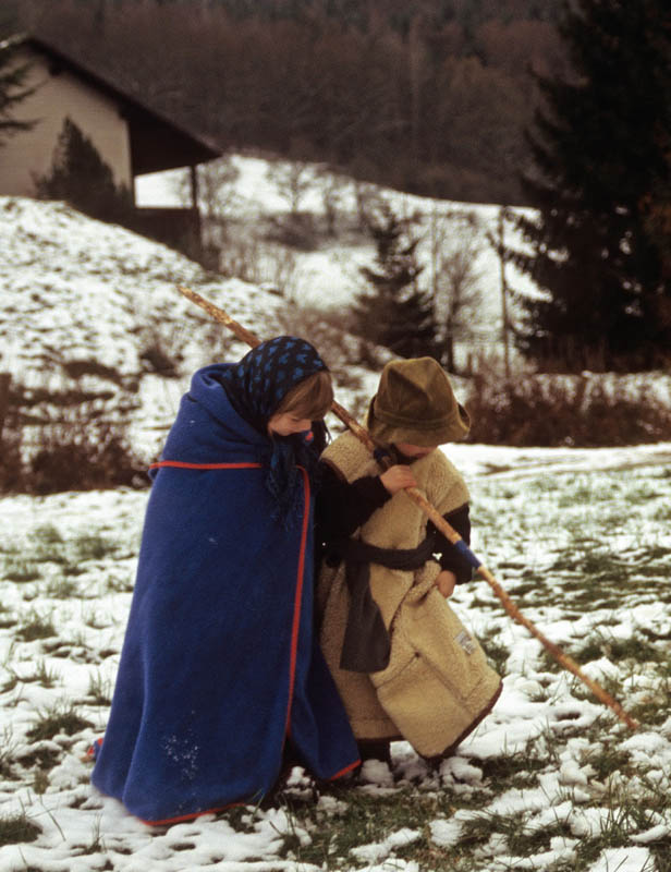 Krippenspiel auf dem Dorf - Kinder spielen die Szenen nach.