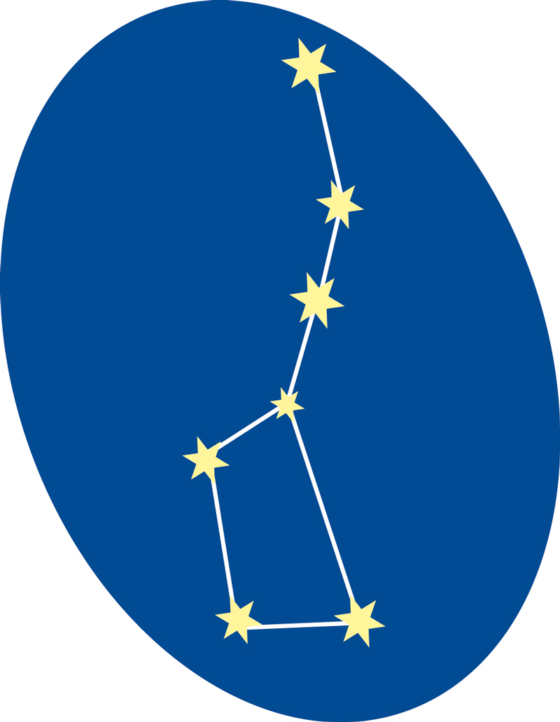 Der Große Wagen dreht sich um den Polarstern herum, sodass er zum Beispiel auch mal mit der Deichsel nach oben zu sehen sein kann.