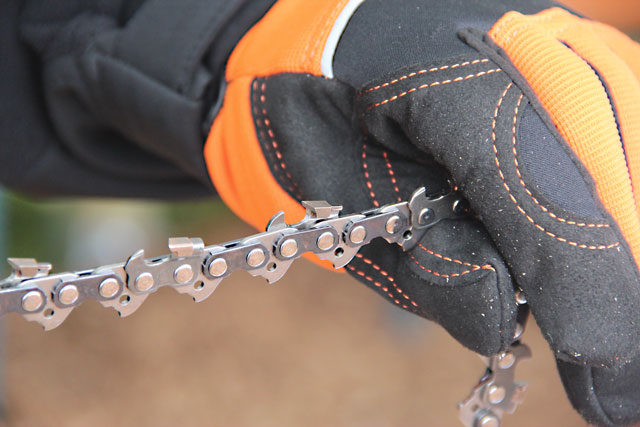 Wer aus dem Industrieholz direkt Brennholz anfertigt, der kann dies natürlich mit einer klassischen Stihl Motorsäge tun. Seit einem halben Jahr gebe es die neue Hartmetall-Sägekette Rapid Duro 3. „Bisher wird diese Sägekette überwiegend von Profis angewandt, da sie eine vier Mal längere Standzeit der Kette ermöglicht. Den Privatanwendern ist die Sägekette, die zwischen 60 und 100 Euro kostet bislang zu teuer“, so ein Stihlmitarbeiter. Man wolle nun aber auch vermehrt die Privatanwender ansprechen, da sich die Hartmetall-Sägekette auf alle Fälle rechne. Sie sei besonders für den Einsatz bei verschmutztem Holz geeignet. Sie können auf allen Motorsägen, auch anderer Hersteller, verwendet werden.