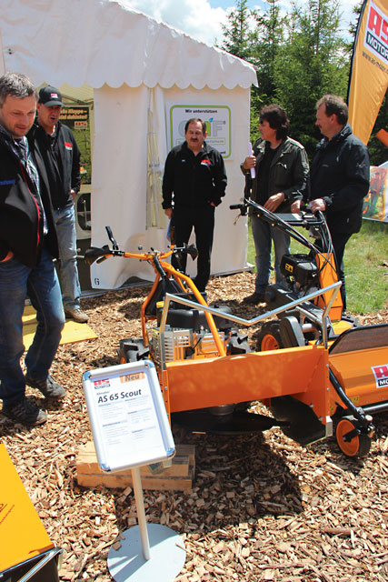 Die Firma AS-Motor Deutschland GmbH & Co. KG aus Bühlertann hat den AS 65 Scout vorgestellt. Dieser Sichelmäher kann Gehölze bis 5 cm Durchmesser problemlos durchtrennen und zerkleinert das Material sofort. Albert Kalmbach, der Prokurist von AS-Motor bemerkte, dass der Scout gemeinsam mit Forstleuten konzipiert wurde zur Pflege von Jungkulturen. „Im Vergleich zu Freischneidern ist der Scout dreimal effektiver“, betonte Kalmbach. Die Schnittbreite betrage 65 cm, das Gewicht 145 kg, der 4-Takt Motor habe eine Leistung von 7,6 kW oder 10,3 PS, sodass Aufwuchs bis 1,2 m Höhe und 2 500 m2/Stunde gemäht werden können, zählt Kalmbach auf. Es gebe auch eine zweite Ausführung mit elektrischem Start und Griffheizung für den winterlichen Einsatz. Die Kosten liegen zwischen 5 100 bis 5 800 Euro inklusive MwSt., ab Oktober starte die Serienfertigung des AS 65 Scout, so Kalmbach.