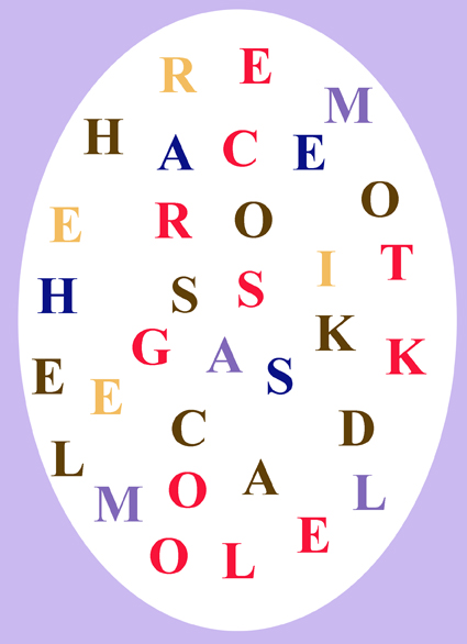 In diesem Rätsel stecken 5 Osterwörter. Setze die Buchstaben zusammen und du findest die Lösungen!