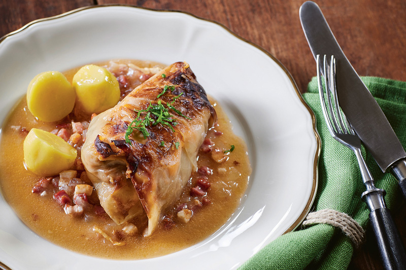 Kohlroulade mit Speck und Kartoffelstücken