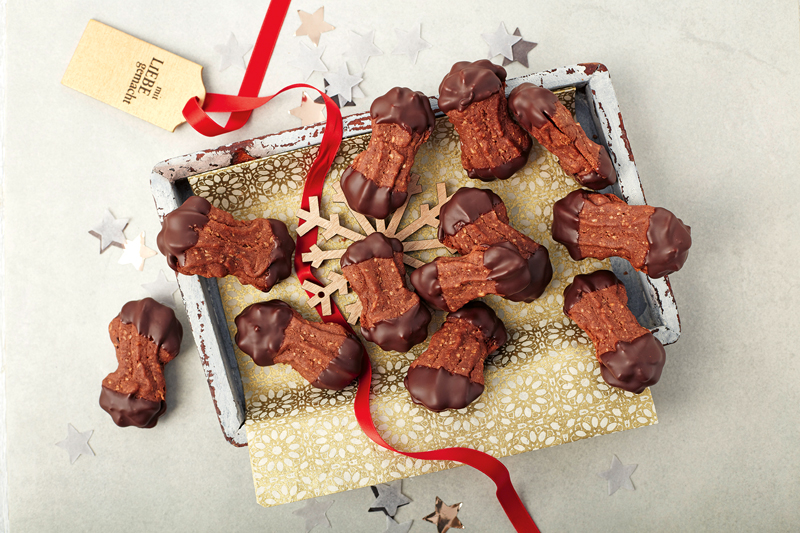 Backblech mit Backpapier belegen. Backofen vorheizen. Ober-/Unterhitze etwa 180 °C, Heißluft etwa 160 °C. Füllung: Marzipan-Rohmasse klein zupfen, mit dem Eiweiß in einen Rührbecher geben und mit einem Mixer (Rührstäbe) glatt rühren. Nüsse, Aprikosenkonfitüre, Milch und Aroma unterrühren und in einen kleinen Gefrierbeutel füllen. Mürbeteig: Mehl mit Backin in einer Rührschüssel mischen. Übrige Zutaten hinzufügen und alles mit dem Mixer (Knethaken) zunächst auf niedrigster, dann auf mittlerer Stufe zu einem Teig verarbeiten. Teig auf bemehlter Arbeitsfläche etwa 3 mm dünn ausrollen und Taler (Ø etwa 8 cm) ausstechen. Vom Gefrierbeutel eine kleine Ecke abschneiden und die Füllung jeweils auf eine Teighälfte spritzen, dabei den Rand frei lassen. Teighälften übereinanderklappen, an den Rändern festdrücken und die Enden dabei leicht in Kipferlform biegen. Kipferl auf das Backblech legen. Eigelb mit Milch verrühren, Kipferl damit bestreichen und backen. Einschub: Mitte, Backzeit: etwa 20 Minuten. Die Kipferl mit dem Backpapier auf einen Kuchenrost ziehen und erkalten lassen. Die Marzipan-Kipferl mit Puderzucker bestreuen. Tipps aus der Versuchsküche: Nach Belieben die Füllung statt mit Rum-Aroma mit „Flüssigem Bourbon-Vanille-Extrakt“ verfeinern. Die Kipferl können in einer gut schließenden Dose etwa zwei Wochen aufbewahrt werden. Die Füllung lässt sich auch gut mit zwei Teelöffeln auftragen. Nach Belieben die Haselnüsse nochmal extra rösten.