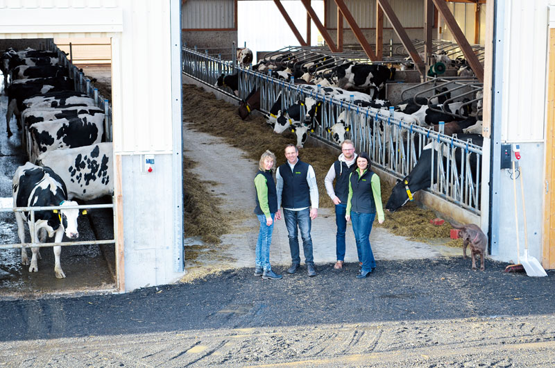 Die Eheleute Irene und Erwin Hooß haben den Betrieb seinerzeit mit 20 Kuhplätzen übernommen. 1992 wurde der MittelÂlangstand von der Anbindehaltung zu einem Boxenlaufstall umgebaut. Aufgrund der Richtlinienvorgaben konnten damals 45 Liegeboxen für Kühe plus neun für Rinder gebaut werden. Die Schweine wurden abgeschafft. Vor dem Umzug in den jetzigen neuen Stall waren es zwischenzeitig 90 Kühe in verschiedenen Ställen, die mühsam umgetrieben und in einem 2 mal 3-AutoÂtandem-Melkstand gemolken wurden. Um dem Hofnachfolger mit seiner Familie eine Existenzgrundlage zu bieten, hätten die 90 Kühe nicht ausgereicht. Da arbeitswirtschaftlich die Grenzen längst überschritten und mehr Tierwohl in dem bestehenden Gebäude nicht umzusetzen waren, stand die Familie Hooß vor der klassischen Entscheidung: die Tierzahl zu reduzieren, als Basis für ein Betriebsleiterehepaar oder ein kompletter Neubau auf die grüne Wiese.