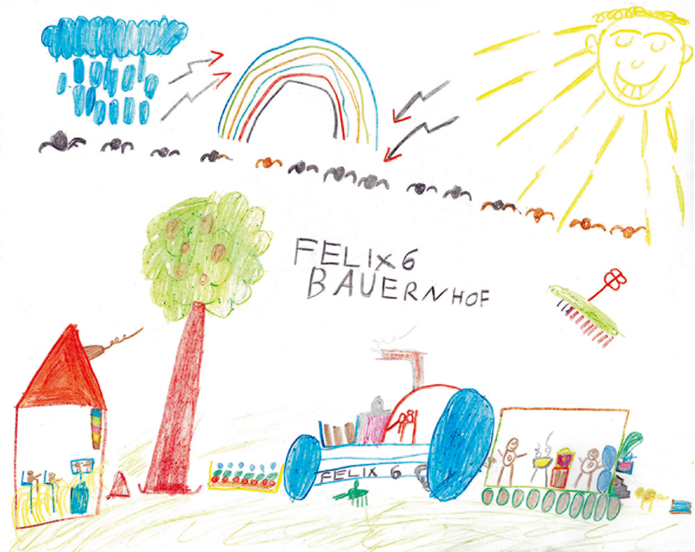 Von Felix (6) Jahre aus Wiesbaden-Igstadt erhielten wir dieses wunderbare Bild. Ihr seht darauf seine Geburtstagsgäste, die gerade eine Ausfahrt ins Feld machen.