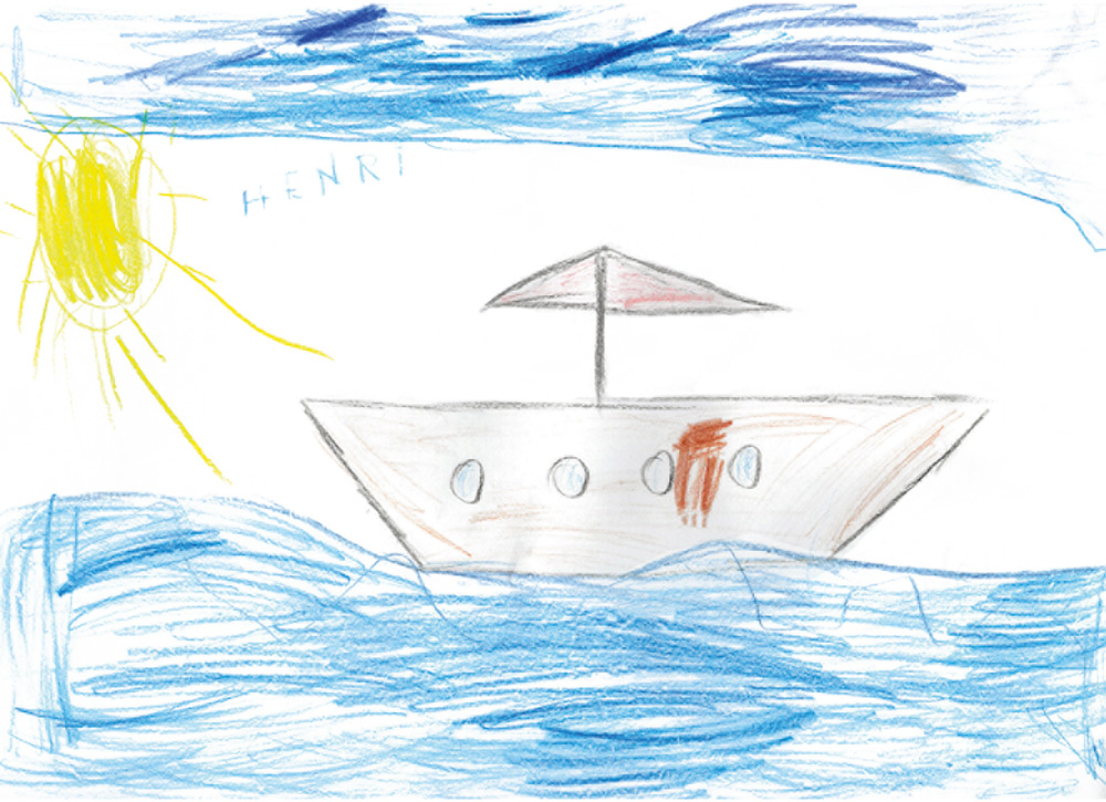 Henri (5 Jahre) aus Tann in der Rhön hat dieses wunderbare Segelschiff auf dem Meer für die Kinderseite gemalt.