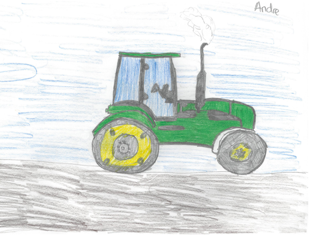 Ein tolles Kunstwerk ist auch dieser Traktor hier rechts, den uns Andre aus Hanhofen für die Kinderseite zugeschickt hat. Andre ist 11 Jahre alt.