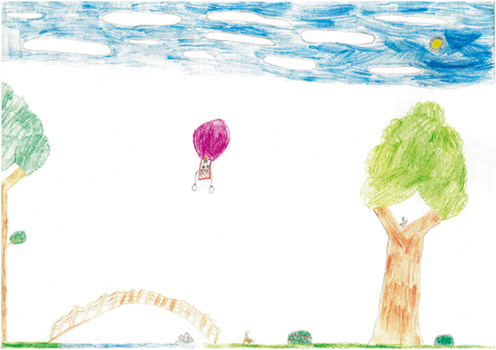 Anna (8 Jahre) aus Eberstedt hat dieses wunderbare Landschaftsbild gemalt. Ihr seht darauf unter anderem die Ilmbrücke und einen Heißluftballon.