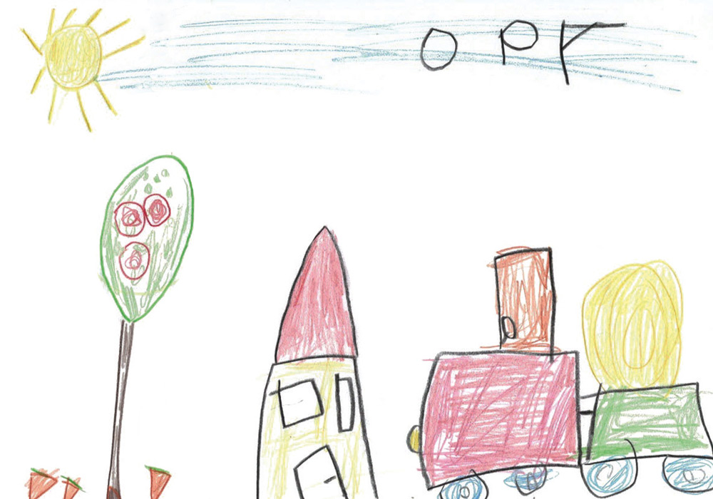 Luis (8 Jahre) aus Aachen war in den Ferien bei seinen Großeltern in Ludwigs­au und hat dort dieses tolle Bild gemalt. Ihr seht darauf seinen Opa beim Grubbern.
