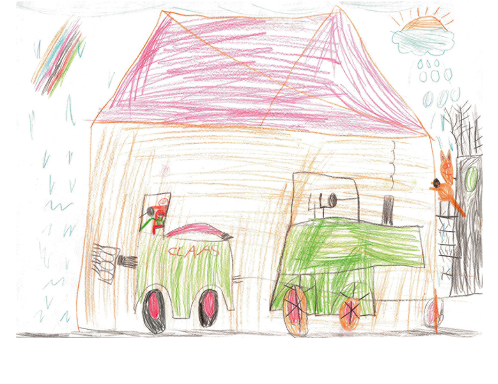 Leni aus Otzberg ist 9 Jahre alt und hat für die Kinderseite dieses wunderbare Bild gemalt. Ihr seht darauf den Claas-Traktor ihres Vaters.