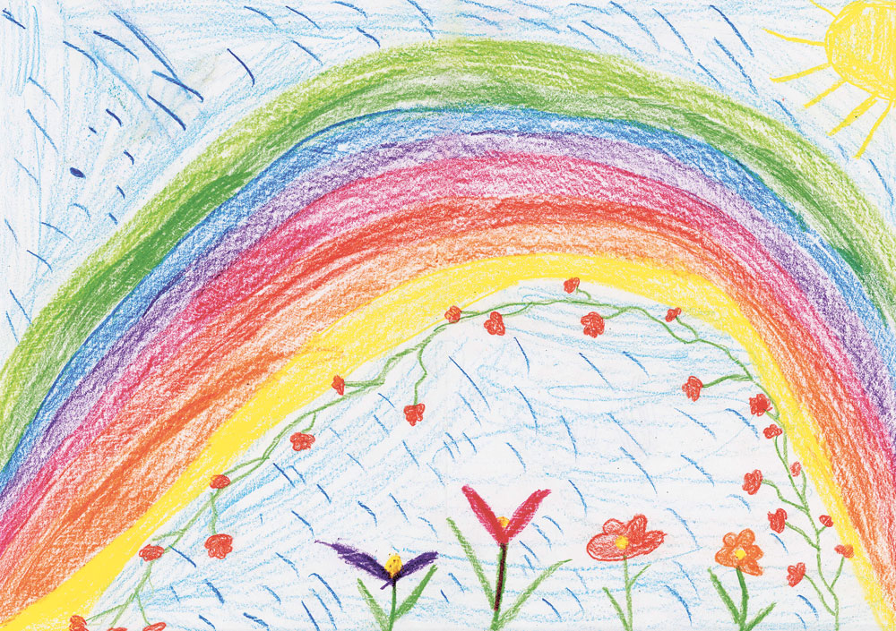 Dieser besondere Regenbogen von Ida (8 Jahre) aus Birstein-Wüstwillenroth verbirgt sicher einen Schatz an seinem Ende, wie es in alten märchenhaften Erzählungen beschrieben wird.