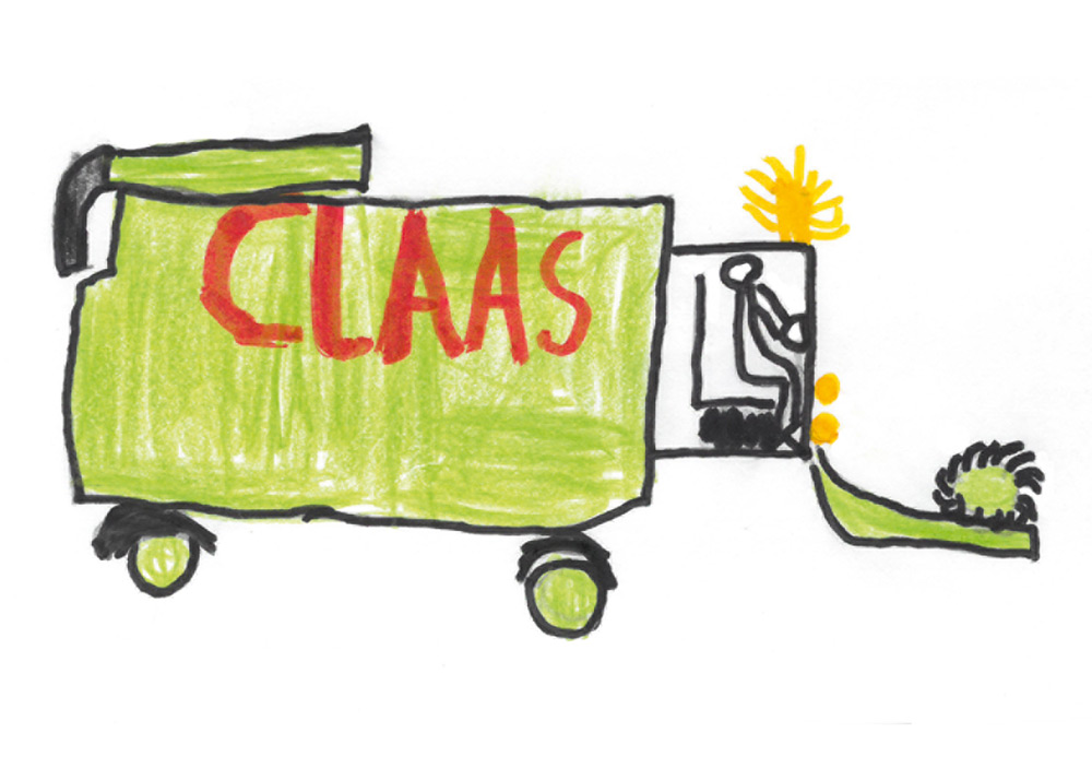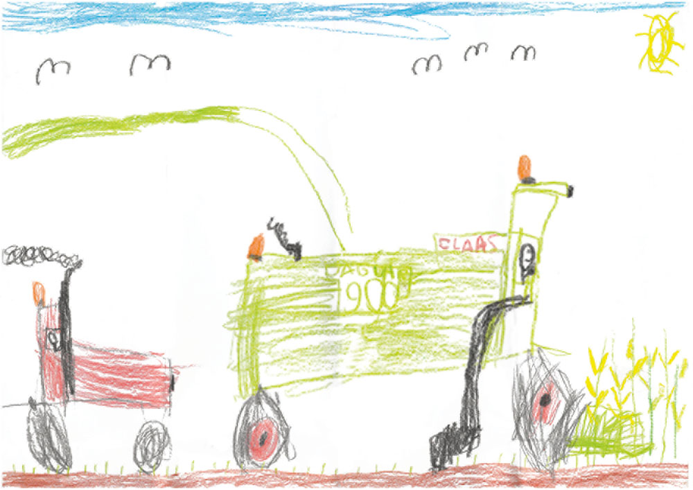 Hier seht ihr einen Landwirt bei der Arbeit mit dem Mähdrescher. Benedikt (6 Jahre) aus Dautphetal-Herzhausen hat dieses tolle Bild gemalt.