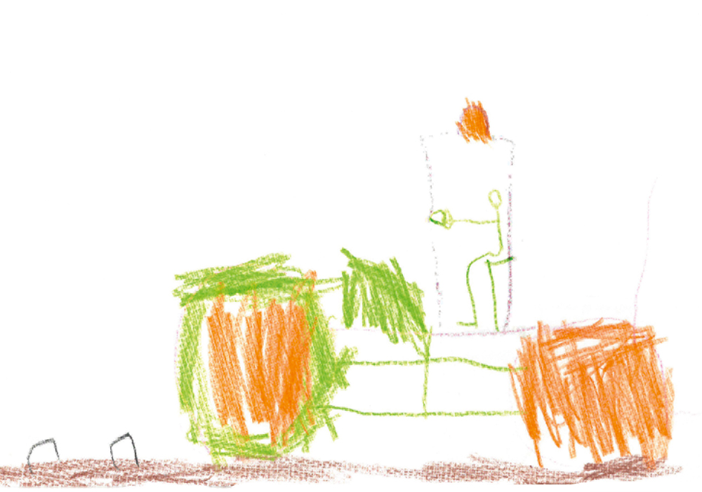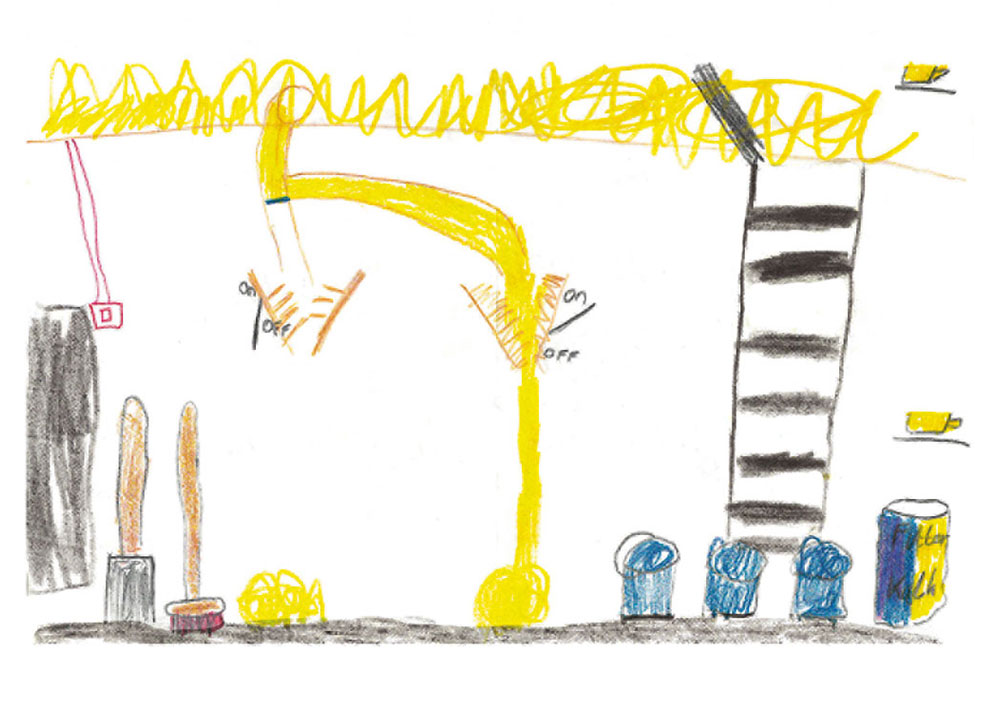 Getreidespeicher und eine Schrotmaschine. Frida (9 Jahre) aus Grävenwiesbach-Hundstadt hat es gemalt.