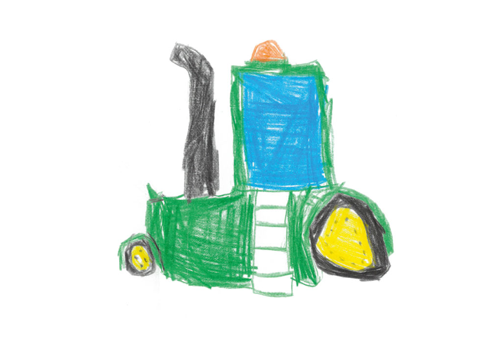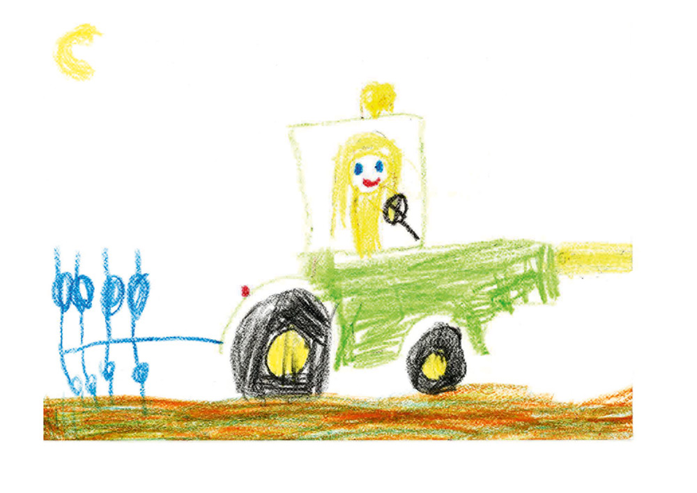 Jahre) aus Fuldabrück-Bergs­hausen möchte, wenn sie groß ist, gerne einmal selbst am Lenkrad eines Traktors von John Deere sitzen. Das hat sie hier auf diesem tollen Bild ganz wunderbar dargestellt.