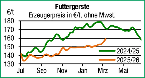 | Futtermittel | Auch der Futtermittelmarkt wird von der geopolitischen Situation geprägt. Ölschrote reagierten in der vergangenen Woche mit Aufschlägen, die auf die Nachrichtenlage aktuell in eine Korrektur übergegangen sind. Futterwerke agieren verstärkt auf Sicht. Das Termingeschäft bleibt vernachlässigt, zuckerhaltige Futtermittel werden fester bewertet. |