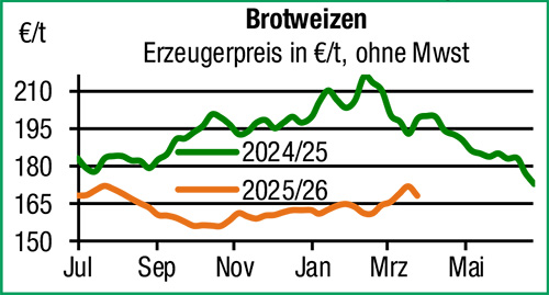 | Getreide und Ölsaaten | Auch aktuell bleiben die Getreidemärkte stark von geopolitischem Geschehen beeinflusst. Die Notierungen an den Terminmärkten fallen nach zwischenzeitlichem Anstieg wieder deutlich ab. Während der Fokus der regionalen Landwirtschaft auf die Frühjahrsbestellung gerichtet ist, bleiben Neugeschäfte an den heimischen Landlägern eher die Ausnahme. Lediglich für Raps der neuen Ernte konnten in der zurückliegenden Preisphase > 450 EUR/t nennenswerte Mengen in die Bücher genommen werden. Alterntige Ware wird noch in erheblicher Größenordnung in Erzeugerhand vermutet, aber auch gehandelte Ware im Handelslager fließt nur zögerlich ab. |