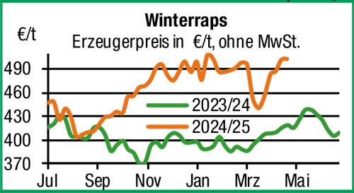 | Getreide und Ölsaaten | Am Getreidemarkt stehen die Erzeugerpreise nach schwachen Vorgaben der Terminmärkte weiterhin unter Druck. Die Preisnennungen haben bei fehlender Abgabebereitschaft in der Landwirtschaft jedoch oft nur nominellen Charakter. An den Landlägern steht zudem das Betriebsmittelgeschäft im Vordergrund, die Frühjahrsbestellung steht in weiten Landesteilen kurz vor dem Abschluss. Teils ergiebige Niederschläge entspannen die Ertragserwartungen deutlich. |