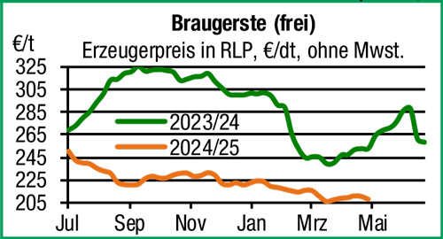 | Getreide und Ölsaaten | Am Getreidemarkt bleiben die regionalen Erzeugerpreise unter Druck. Alterntige Ware gilt vielfach als durchgehandelt. Nachfrage kommt nur für kleinere Einheiten aus der Futterindustrie, Mühlen zeigen kaum Anschlussbedarf. Aufgelder zu Futtergetreide werden reduziert, vereinzelt sind gar Abwehrpositionen spürbar. Bei laufender Frühjahrsbestellung und Futterernte bleibt die Vermarktung der neuen Ernte vernachlässigt, auch weil die Offerten aktuell kaum Handlungsbedarf erkennen lassen. |