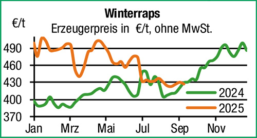 | Getreide und Ölsaaten | Die Umsätze am regionalen Getreidemarkt bleiben ausgesprochen schwach und die Nachernteerfassung ist förmlich zum Erliegen gekommen. Die Industrie ist in allen Verwertungsbereichen umfassend eingedeckt, besprochen werden bestenfalls Anschlusstermine. Immerhin scheint sich der Mengendruck aus der Ernte an den Erfassungslägern abgebaut zu haben, für den aktuellen Berichtszeitraum wurden keine Abwehrpreise mehr aufgerufen. So können sich die Erzeugerpreise für Brot- und Futtergetreide leicht befestigen, auch Braugerste hat ihren Boden gefunden. Die Aufgelder für Qualitätsweizen schmelzen hingegen weiter ab, Raps nach Vorgaben der Matif ebenfalls schwächer bewertet. |