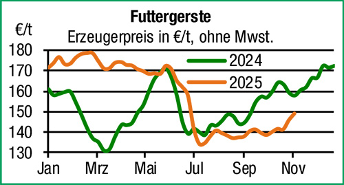 | Schlachtschweine | Am Schlachtschweinemarkt steigt das Angebot saisonal bedingt weiter an. Eine Nachfragebelebung durch das Weihnachtsgeschäft wird erst später im November/Dezember erwartet, dennoch rückt das Fleischgeschäft zu den Feiertagen zunehmend in den Fokus. An der Börse blieben die jüngsten Auktionen ohne Verkäufe, die Preiserwartung ist stabil. |
