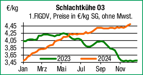 | Nutzkälber | Der Handel am Nutzkälbermarkt bleibt fortwährend vom Geschehen um die Blauzungenkrankheit geprägt. Durch den hohen Anteil schwacher Tiere bleiben altersgerecht entwickelte Kälber gesucht und weiter fest bewertet. |