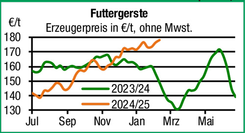 | Getreide und Ölsaaten | Der Handel am regionalen Getreidemarkt verläuft ausgesprochen schwach, es fehlen auf allen Handels- und Verwertungsstufen die Nachfrageimpulse. Auf Anfrage sind die Mühlen erst im nächsten Quartal wieder am Markt, Braugerste bleibt fortgesetzt vernachlässigt. Überschüssige Mengen drängen in den Futtergetreidehandel. Auch hier läuft das sonst stetige Bedarfsgeschäft eher stockend. Die Offerten des regionalen Erfassungshandels bleiben für Brot- und Futtergetreide auf alle Termine gedrückt, die Abgabebereitschaft in der Landwirtschaft entsprechend verhalten. Lediglich die Rapskurse ziehen nach Matif an, hier werden vereinzelt Abschlüsse für die neue Ernte gemeldet. |