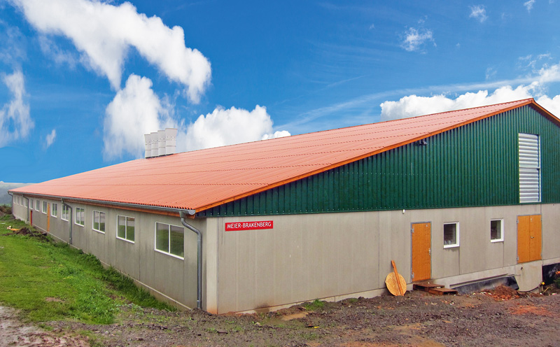Die Planung im Betrieb Bornemann erfolgte in enger Zusammenarbeit mit Wilfried Brede, Serviceteam Alsfeld, und dem Architekten Rasche aus Borgentreich. Der Stall ist aus Mitteln der einzelbetrieblichen Förderung (AKP) gefördert worden. Nach nur 30 Arbeitstagen standen bereits die Hülle mit dem Güllekeller, die Außenwände und das Dach. Im Innenbereich hat der Bauherr sehr viel Eigenleistung eingebracht. „Meier-Brakenberg hat durch einen für unseren Bau zuständigen Leitmonteur unterstützt, der bei uns vor Ort oder am Telefon jederzeit greifbar war“, so Familie Bornemann.