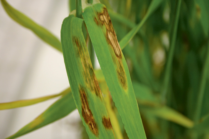 Halmbruch führt im Verlauf der Vegetation zu Symptomen wie Vermorschungen der Halmbasis und daraus resultierendem Lager und zu Weißährigkeit (Notreife). Die Infektionsbedingungen, die gegeben sein müssen und somit auch die Basis der Risikoabschätzung darstellen, sind eine kühlfeuchte Witterung zum Ende Bestockung und Anfang Schossen mit Temperaturen von etwa 5 bis 15 °C.Leitkrankheit im Weizen war in den letzten Jahren eindeutig die Septoria-Blattdürre (Zymoseptoria tritici). Die Krankheit bildet oval, gelbgrün bis wässrige Flecken mit schon früh sichtbaren dunklen Punkten (Pyknidien). Oft befinden sich in den Beständen im Frühjahr schon Infektionen auf den alten Blättern aus dem Herbst. Befallsfördernd für diese wichtige Krankheit sind Infektionen von Ernterückständen, anfällige Sorten und Frühsaaten.
