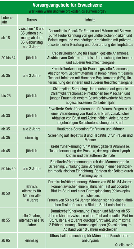 Unter www.svlfg.de/vorsorge finden sich weitere Informationen zu den kostenlosen Vorsorge- und Früherkennungsuntersuchungen sowie zu den Vorsorgeleistungen der LKK.