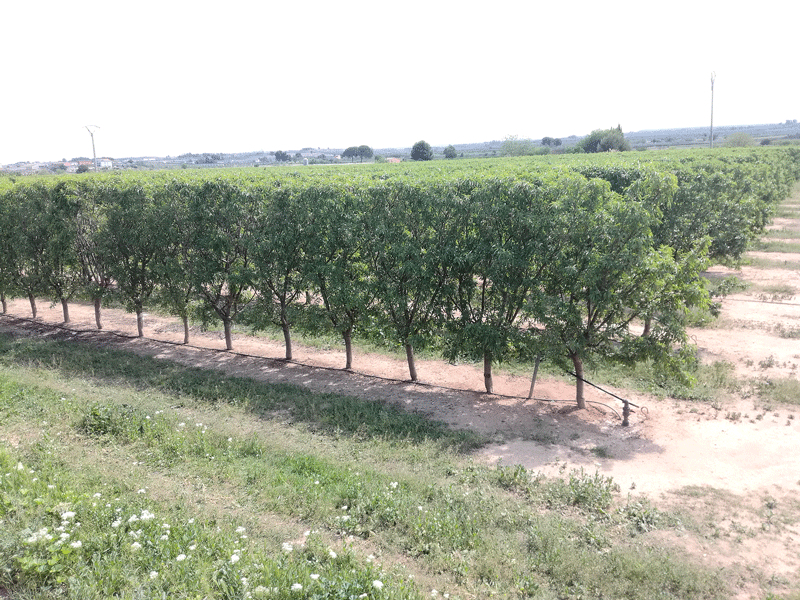 Er empfiehlt, selbstbefruchtende Sorten wie Makako oder Penta zu pflanzen. Beim Pflanzraster habe sich in Versuchen am DLR Rheinpfalz eine Superintensivpflanzung von 3 m x 1,2 m (2 500 Bäume / ha) in einer Spaliererziehung bewährt – siehe Foto, bei der man Mulcher oder Spritze vom Weinbau verwenden könne. Ab Ende August bis in den September und Oktober stehe die Mandellese an, die somit mit der Traubenlese kollidiere. Ab dem dritten bis vierten Standjahr gebe es einen Vollertrag von rund 3 500 kg/ha Kerne. Für die Nachbereitung benötige man aber spezielle Maschinen wie Knack- und Sortiermaschine sowie eine Schälmaschine. Um Mandeln in den Markt zu bringen, wären als Genossenschaften genutzte Aufbereitungsanlagen in den Regionen sinnvoll, ergänzte der Experte.