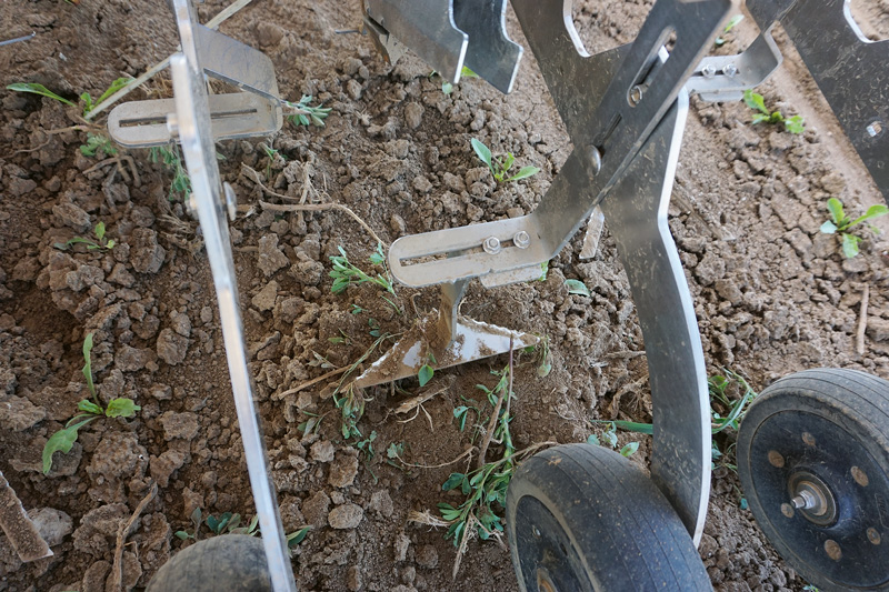 Wie Farmdroid betont, erfolgt die Unkrautregulierung ausschließlich mechanisch. Dabei arbeiten die Werkzeuge zwischen den Reihen als auch in der Reihe zwischen den Pflanzen; der Reihenabstand ist in 25-cm-Intervallen konfigurierbar. Auf diese Weise biete der Roboter eine effektive und wirtschaftliche Alternative bei der Unkrautbekämpfung.